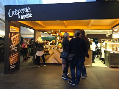 Project consisted of creating interior elements of the Bageterie Boulevard at the Karlovy Vary International Film Festival (KVIFF). The task was to create a temporary point of sale for visitors at the film festival, including an outdoor covered garden. Part of the project was to create a corner for preparing crepes.