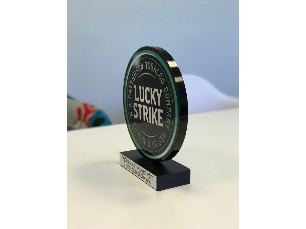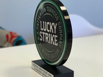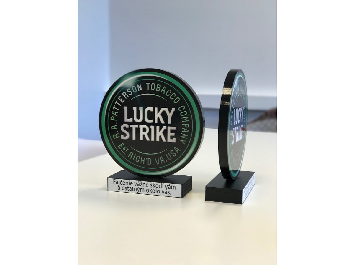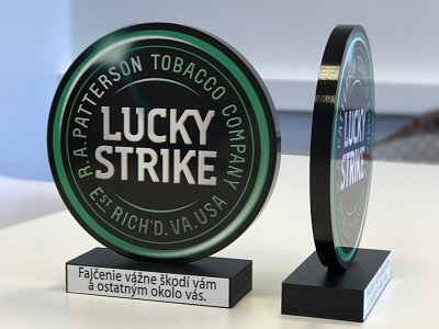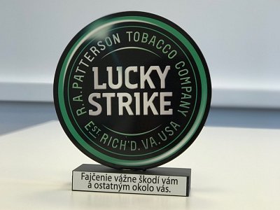 A simple design stand for BAT Lucky Strike products displayed in newsstands and news parlors across Slovakia.