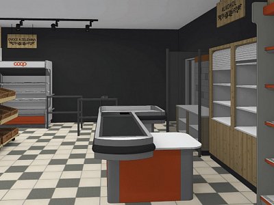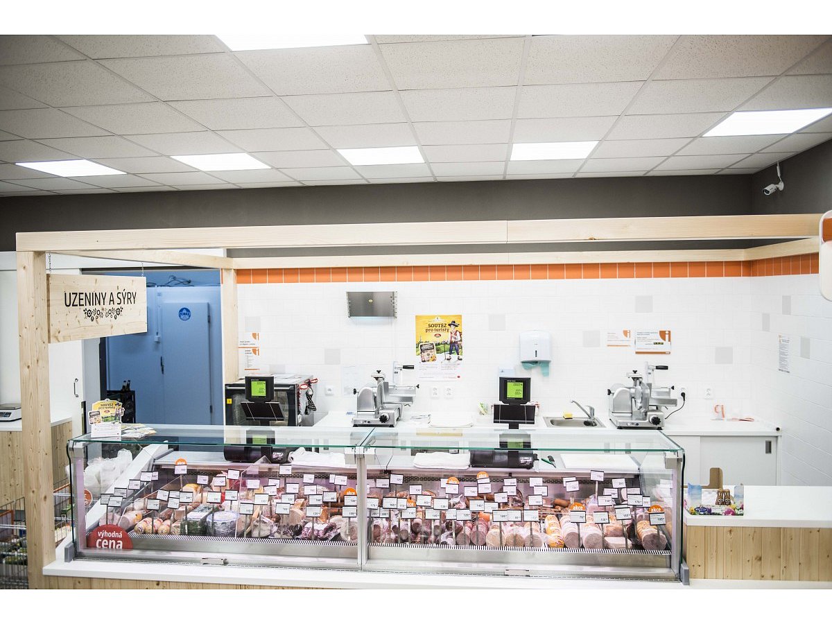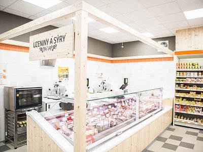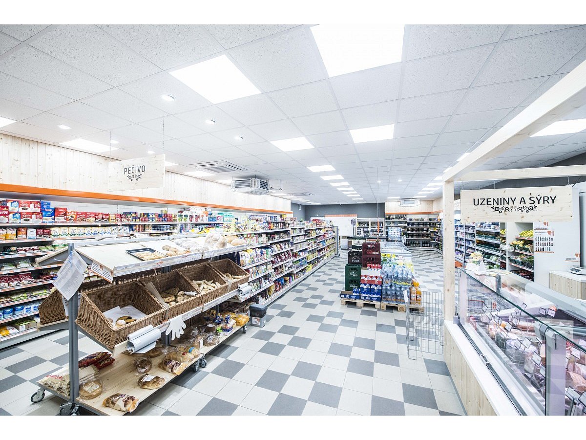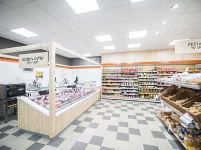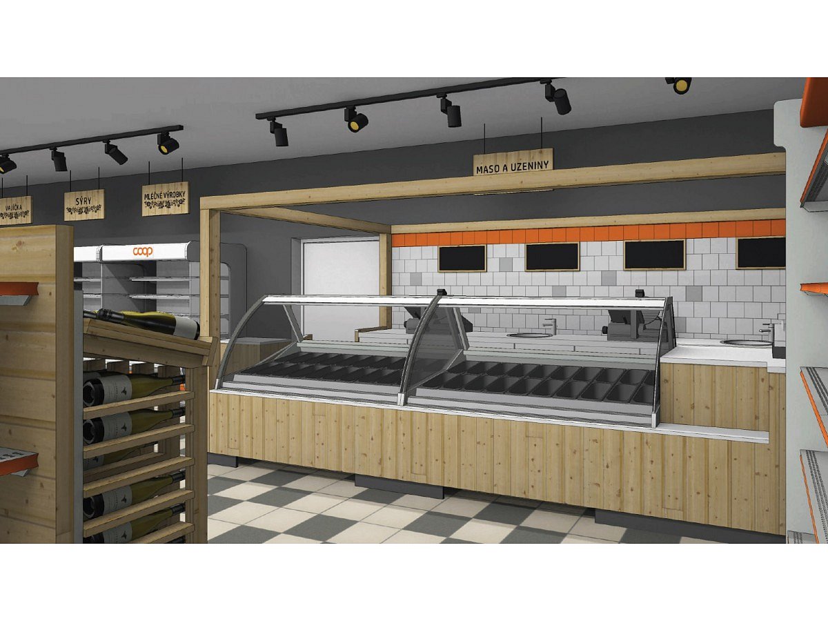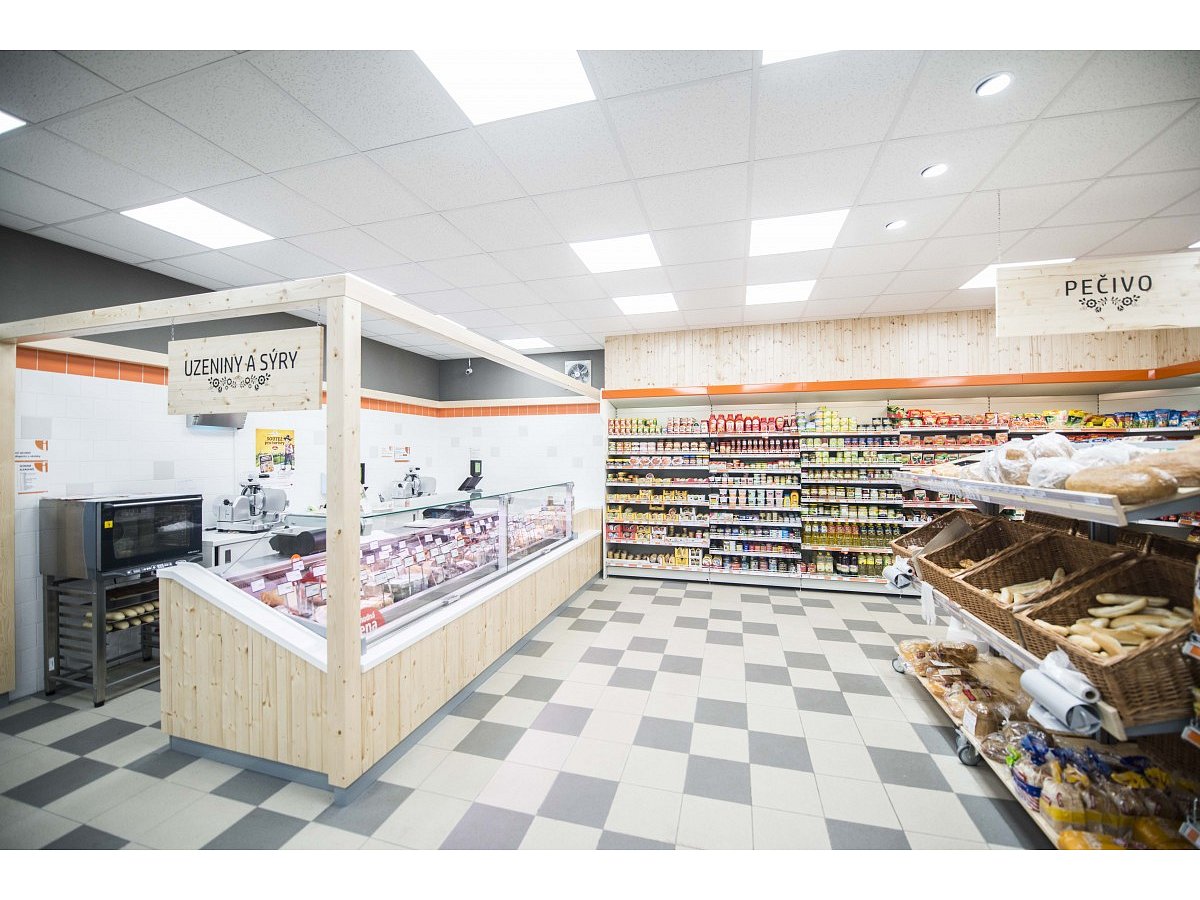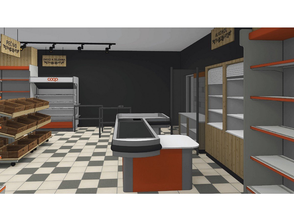 The task of the project was to design and implement two stores in the historic wine region, Valtice, in southern Moravia. The old building underwent major reconstruction, where two separate spaces were created, in which the client wanted to set up a grocery and shoe store under his corporate brand "COOP".