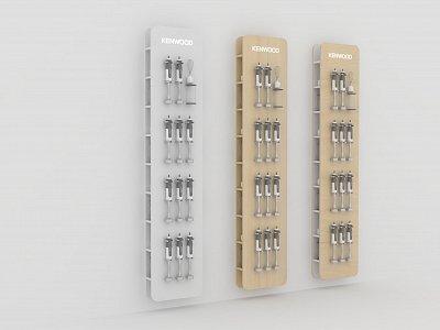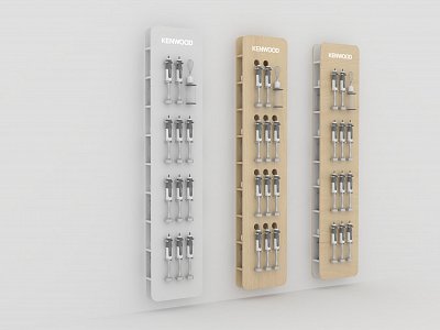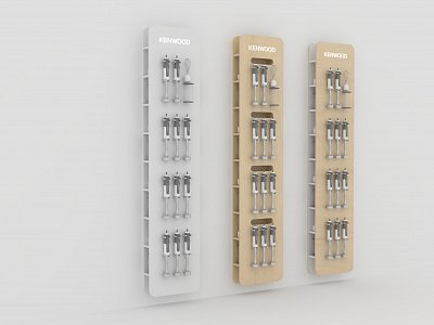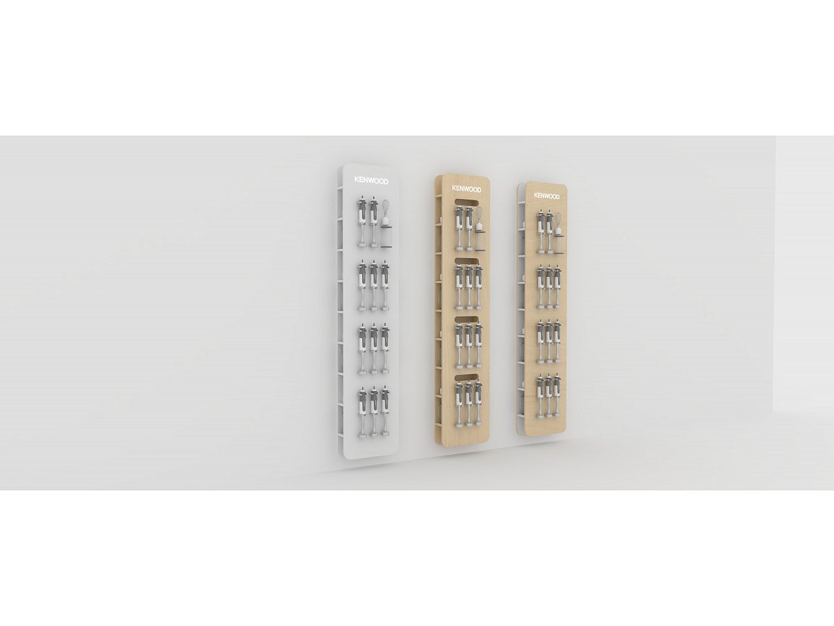 A rack for Kenwood kitchen robots which was designed and exhibited for the Prague Culinary Institute and designed and manufactured in several variants. All include 3D logo branding.