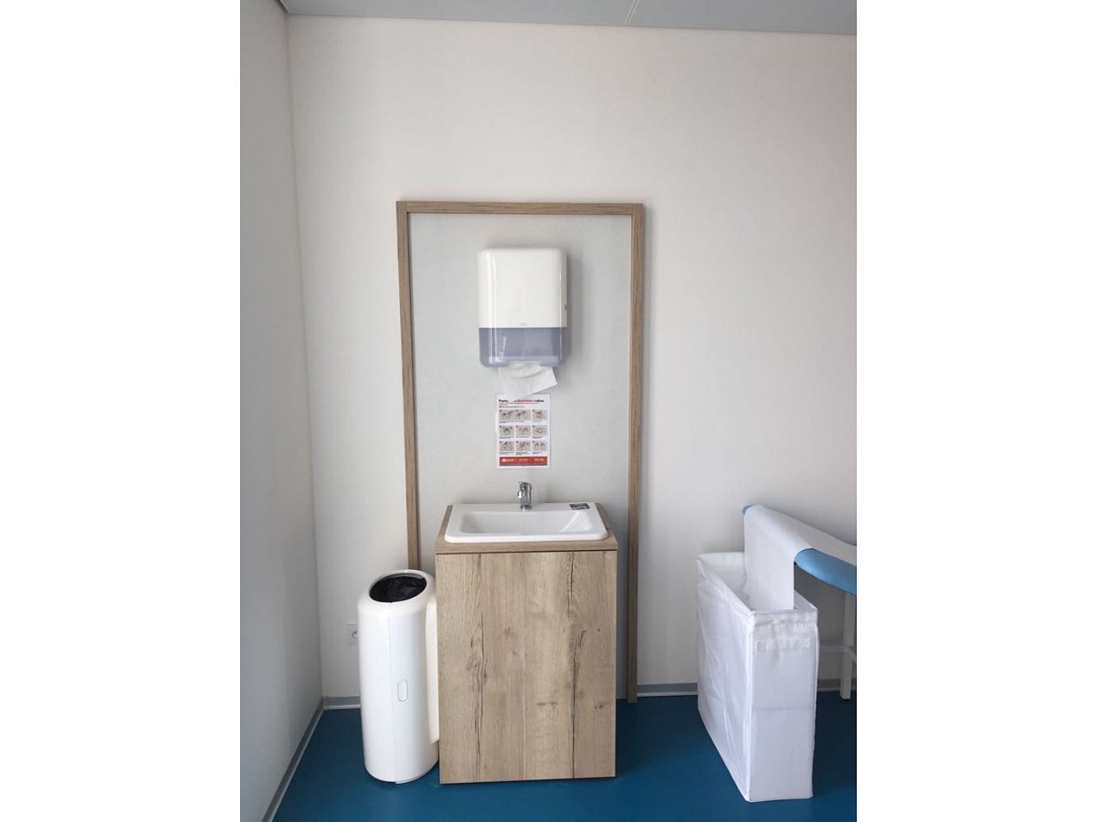 With any doctor’s visit, we want to walk into a sterile and well sanitized environment. This was the objective behind our project with PREVENT which consisted of building out a sanitation area with cabinet segments.