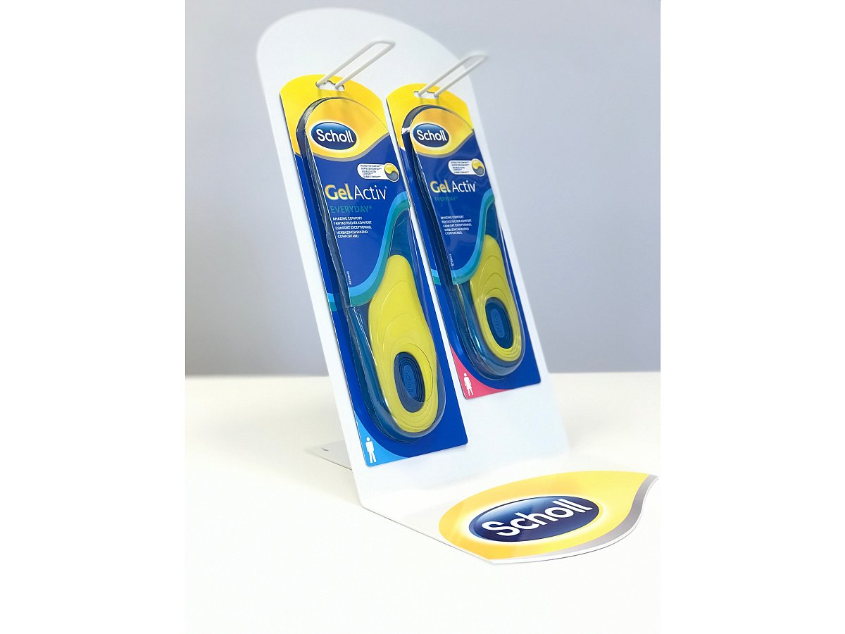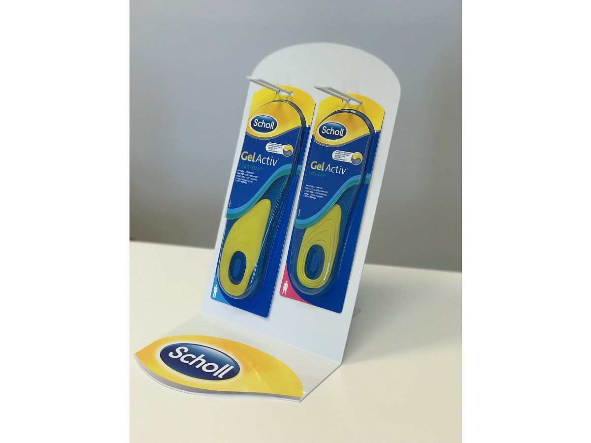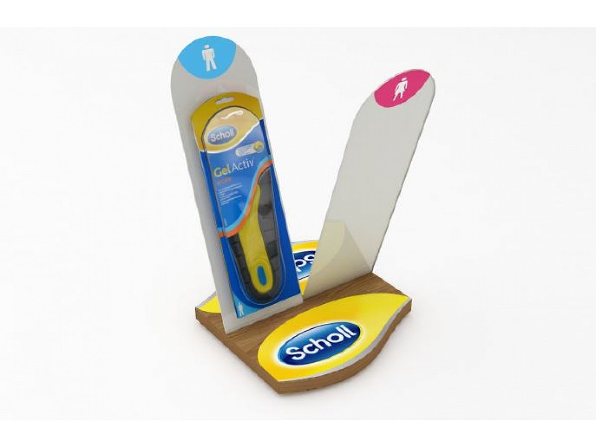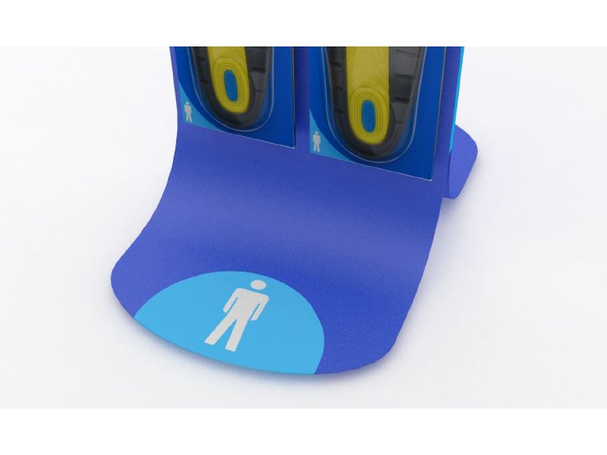 Elegant stand with flexibility in the display of men's or women's insoles. The stand is made in several variants so that the client can choose according to their preference.