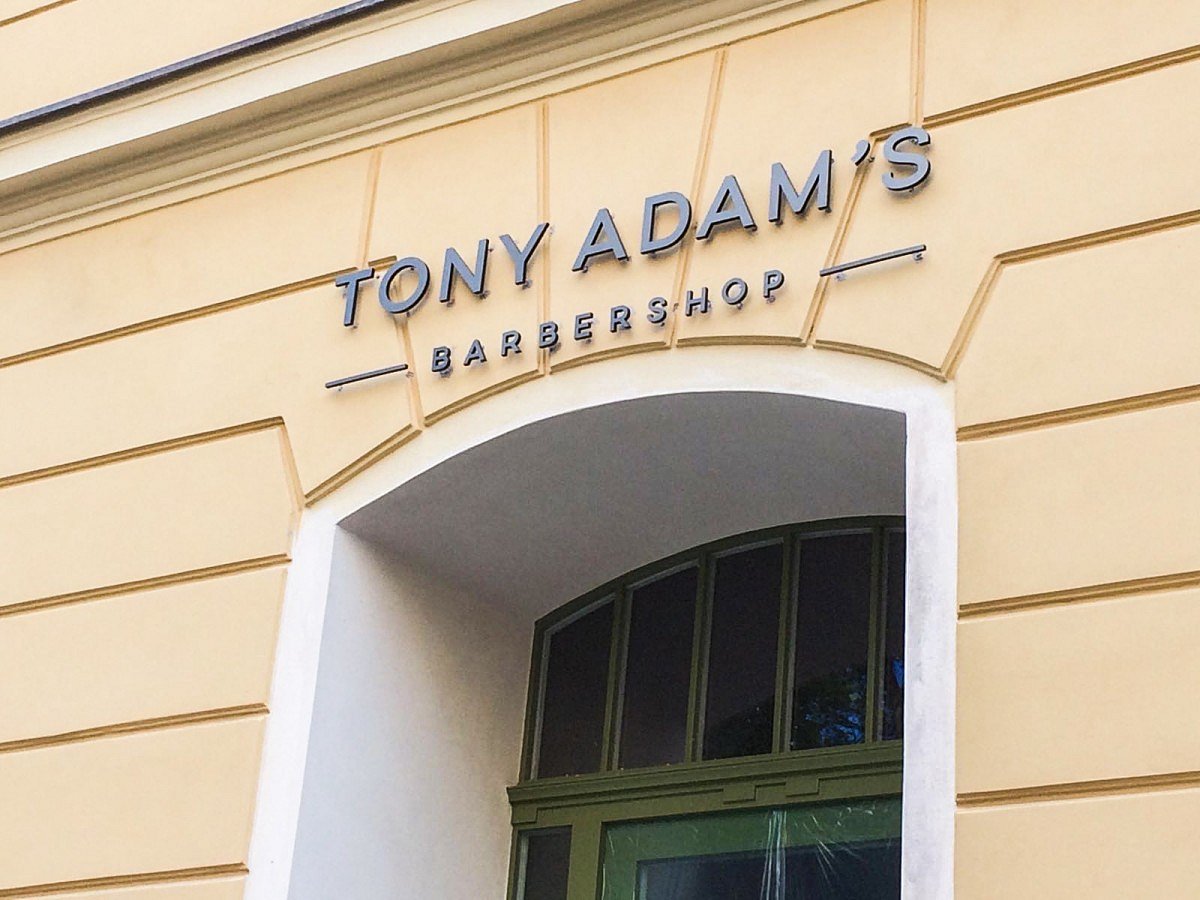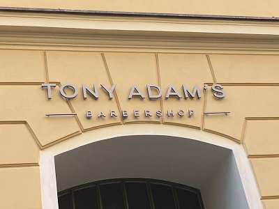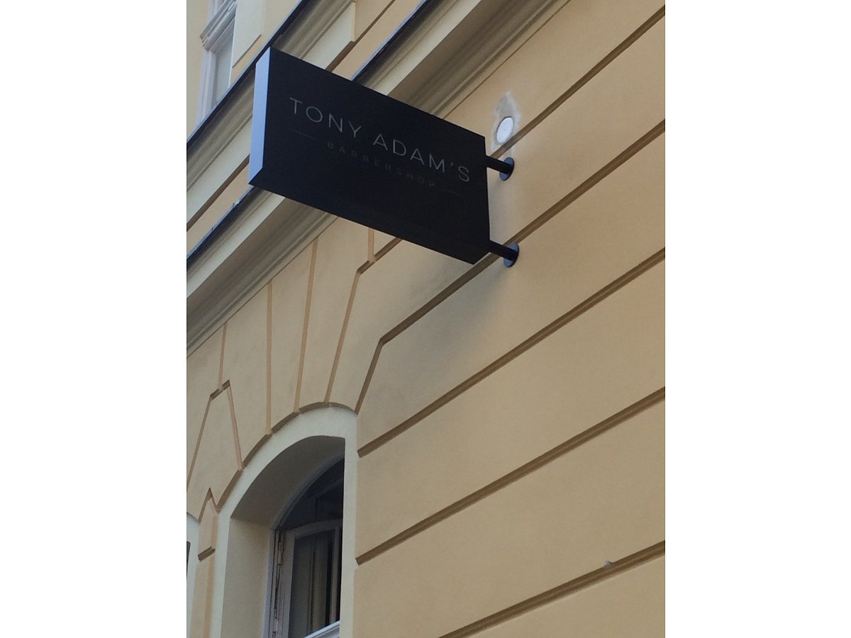 Project consisted of design, production and installation of 3D storefront sign for Prague-based hairdresser TONY ADAM’S. The sign is nicely mounted to the wall of a historic building – part of the design objective was to create a light protrusion effect.